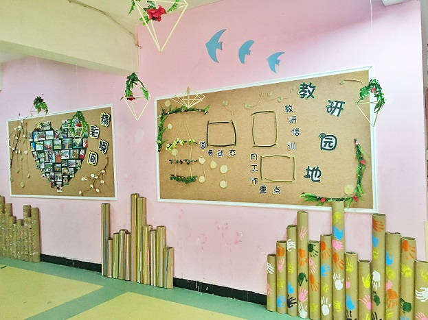 隨后,各班教師根據(jù)幼兒年齡特點、教學主題內(nèi)容,結(jié)合有限的空間,大膽構(gòu)思、精心創(chuàng)設,利用豐富多樣的材料,創(chuàng)設出了各具特色的室內(nèi)環(huán)境、形式各異的主題墻、溫馨的家園互動欄及幼兒感興趣的特色功能室和彰顯韻味的走廊文化等。