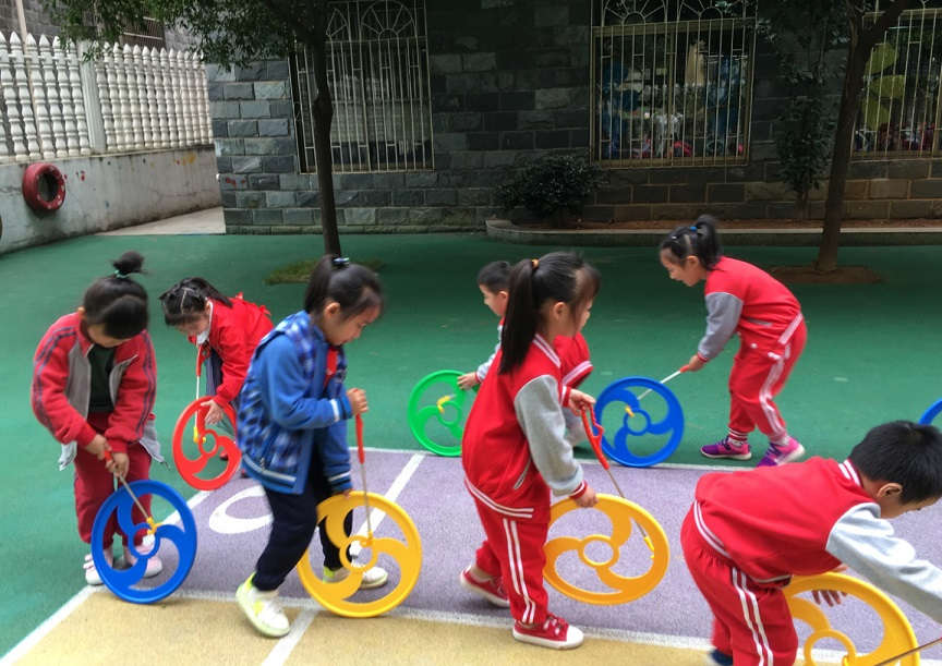 主要的鍛煉項目有爬行墊、跨欄、平衡木、風(fēng)火輪等,老師們利用這些豐富的器械,設(shè)計出很多好玩又新穎的障礙賽,鍛煉幼兒的平衡能力,以及手部和腿部肌肉的運動。孩子們在運動中收獲快樂,鍛煉身體。引導(dǎo)幼兒自主選擇器材的開放式鍛煉,讓孩子們不再局限于規(guī)定的一方小天地,不再在老師的指揮棒下運動,他們可以玩到更多的器具,真正做晨間鍛煉的主人,達到積極有效的鍛煉效果。