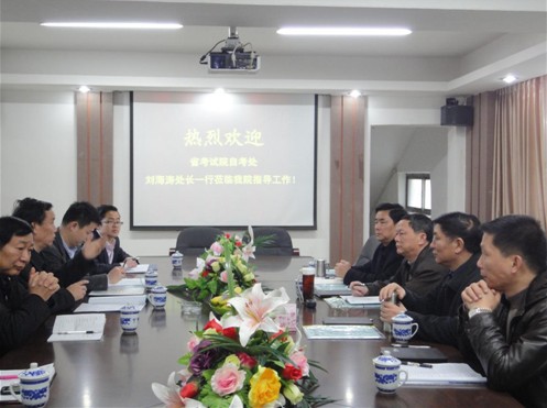 3月6日上午,省教育考試院自學(xué)考試處劉海濤處長(zhǎng)及市自學(xué)考試辦公室相關(guān)領(lǐng)導(dǎo)一行四人蒞臨江西工商職業(yè)技術(shù)學(xué)院指導(dǎo)工作。學(xué)院領(lǐng)導(dǎo)和相關(guān)處室負(fù)責(zé)人出席座談會(huì),院長(zhǎng)李暉主持會(huì)議。