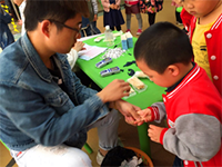 在老師的指導(dǎo)下,孩子們有序地進(jìn)行身高、體重、血紅蛋白(化驗)、視力等多項檢查。