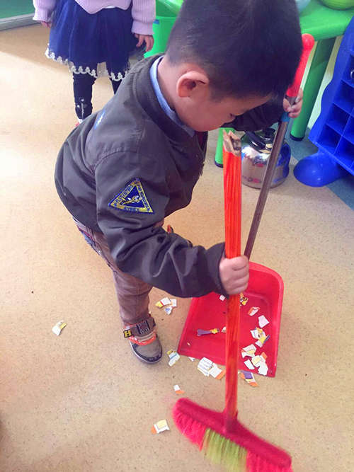 活動中,在對孩子進行了“五一”國際勞動節(jié)的相關(guān)知識介紹的基礎(chǔ)上,金沙園開展了系列教育活動。通過擦桌子凳子、掃地、給植物澆水鏟土、倒垃圾等勞動實踐活動,孩子們感受了勞動的辛勞,同時也體驗了勞動的樂趣。這有助于幫助孩子從小樹立良好的道德觀、榮辱觀,教育幼兒從小熱愛勞動,從自己做起,從小事做起,在自己的事情自己做的同時能為他人、為集體服務(wù),培養(yǎng)幼兒的責(zé)任感和社會適應(yīng)能力。