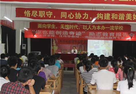 8月24日,南昌現(xiàn)代外國語學(xué)校迎賓校區(qū)組織舉辦了面向該校全體高三年級學(xué)生的“你也能創(chuàng)造奇跡”勵志教育報(bào)告會,由國內(nèi)著名勵志教育專家汪傳華主講。